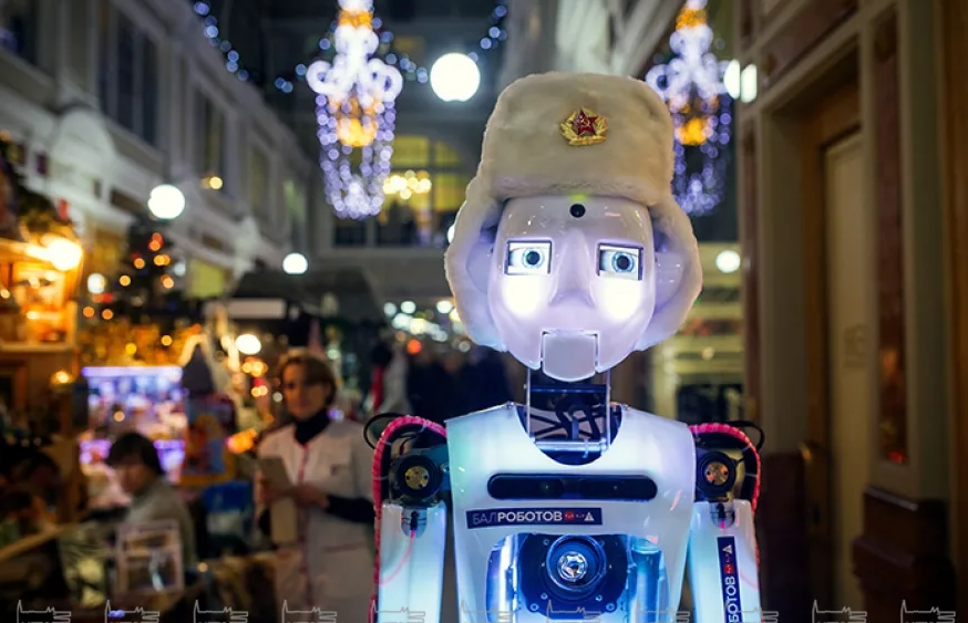 - «Робо‑Дед Мороз». Поздравляет гостей, раздает подарки, ведет диалог с детьми. Может рассказывать новогодние истории или загадывать загадки.